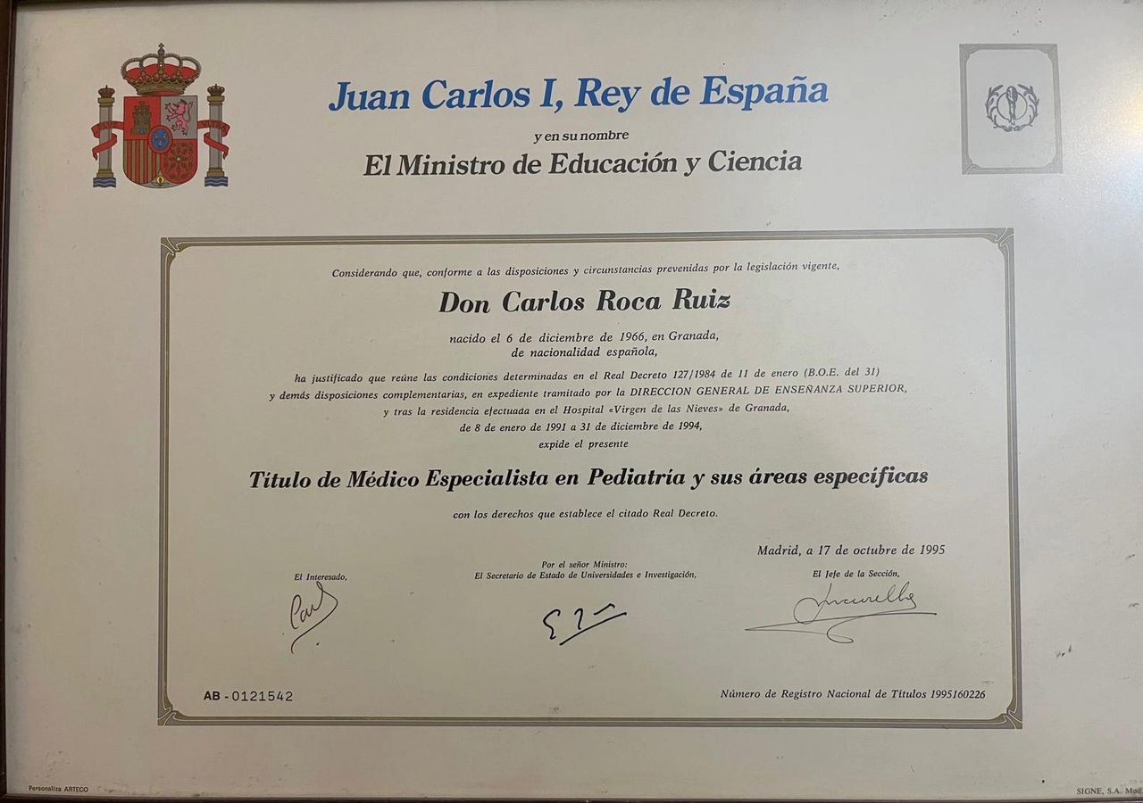 Hola, soy Carlos Roca, médico pediatra. Sé perfectamente que la salud y el bienestar de vuestros hijos es lo más importante que tenéis, y mi principal objetivo es acompañaros en cada etapa de su crecimiento ofreciendo un cuidado médico de máxima calidad, cercano y de confianza.