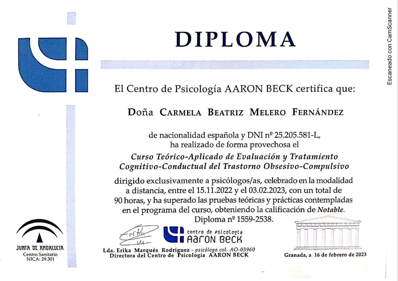He sido moderadora oficial en la Asociación TOC Zaragoza, coordinando grupos de afectados y familiares. Además, me formé en el abordaje específico del Trastorno Obsesivo Compulsivo en el Centro Aaron Beck, aplicando la terapia de exposición con prevención de respuesta.