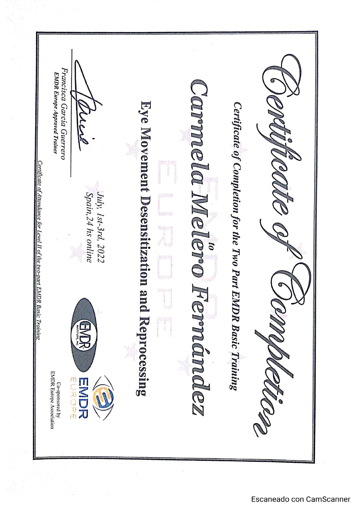 Acudí a terapia por problemas relacionados con la ansiedad y recuerdos intrusivos. Carmela utilizó EMDR con mucha delicadeza y profesionalidad; noté mucha mejoría en la intensidad de los recuerdos y ahora lo suelo gestionar mucho mejor. Estoy muy agradecida.
