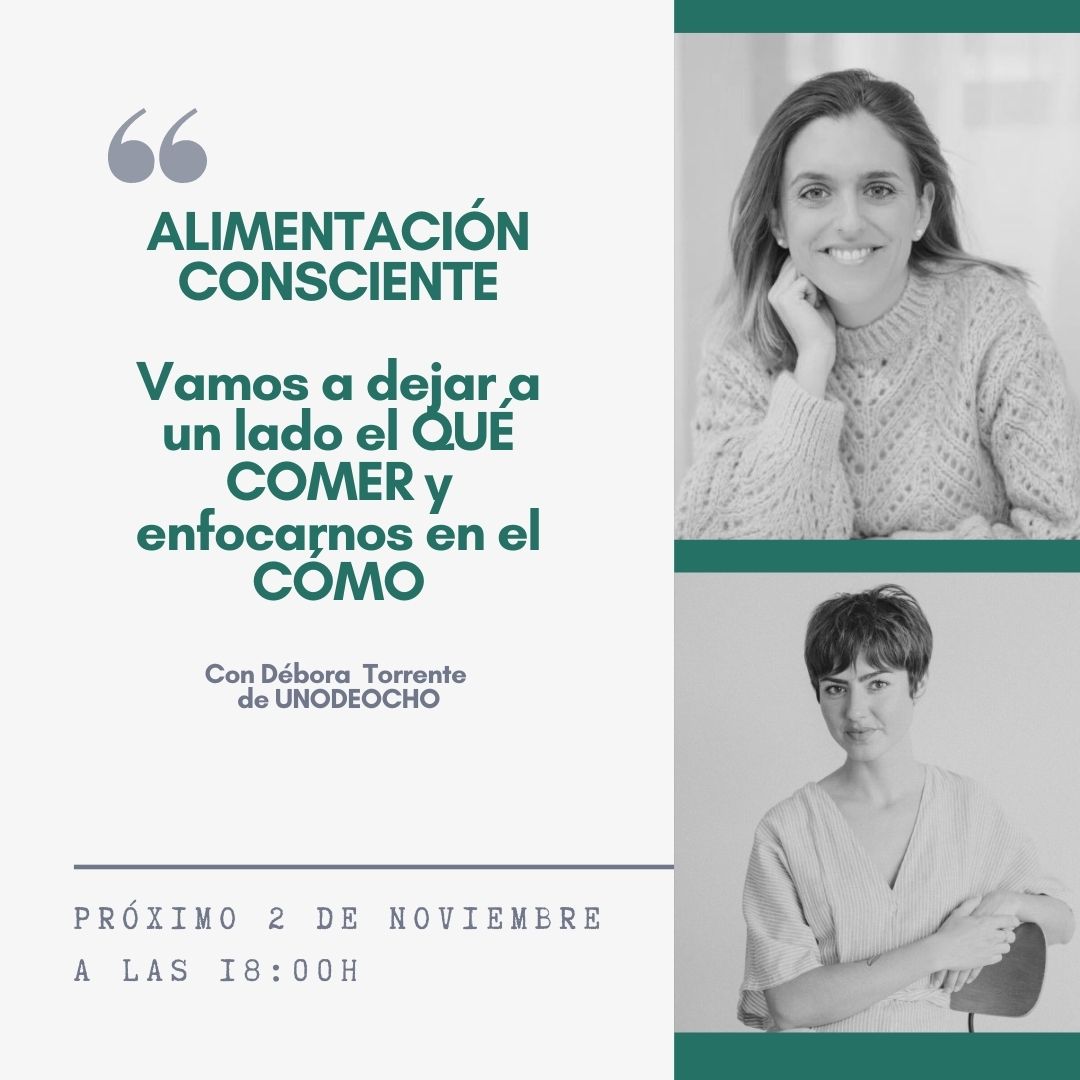 El próximo lunes 2 de noviembre a las 18.00 hablaremos en directo a través de Instagram Live en mi cuenta sobre alimentación consciente mi compañera Deborah Torrente y yo. ¡Os esperamos! Después quedará grabado y se subirá a YouTube.
