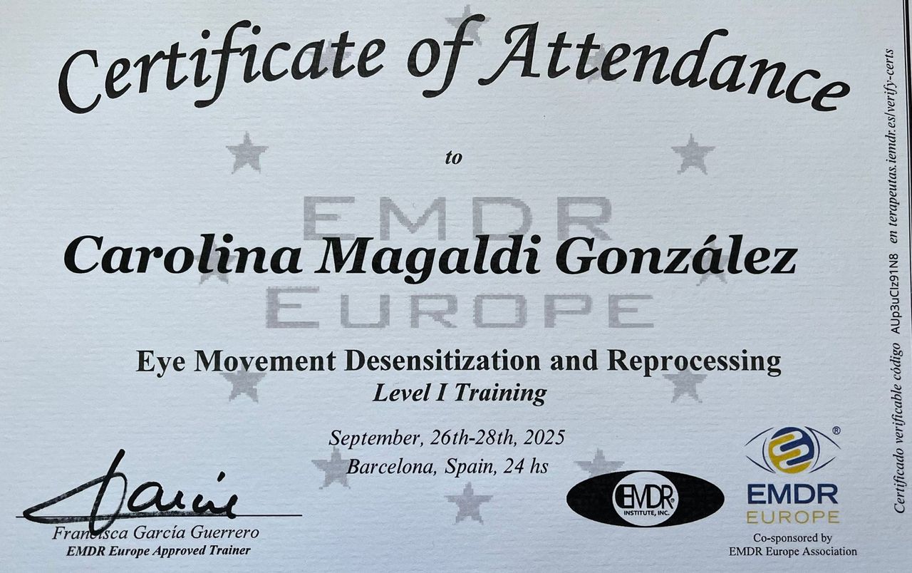 Soy Carolina, psicóloga general sanitaria. Mi objetivo es acompañarte durante todo el proceso sin juzgar, creando un espacio seguro para ti. Identificaremos las estrategias terapéuticas más adecuadas para alcanzar un mayor bienestar, promoviendo tu crecimiento personal y autoconocimiento desde un enfoque integrador. Me encuentro en constante formación para ofrecerte una atención de calidad y eficaz.