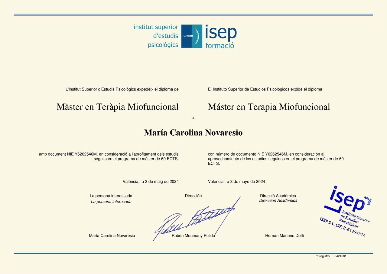 ¿Puedo hacer la visita con Carolina Novaresio de forma online, sin tener que desplazarme hasta su consulta?Sí, Carolina Novaresio ofrece consulta de forma remota. Solo tienes que seleccionar "consulta online" cuando vayas a reservar cita desde el calendario, y así podrás ver las fechas y horas disponibles.
