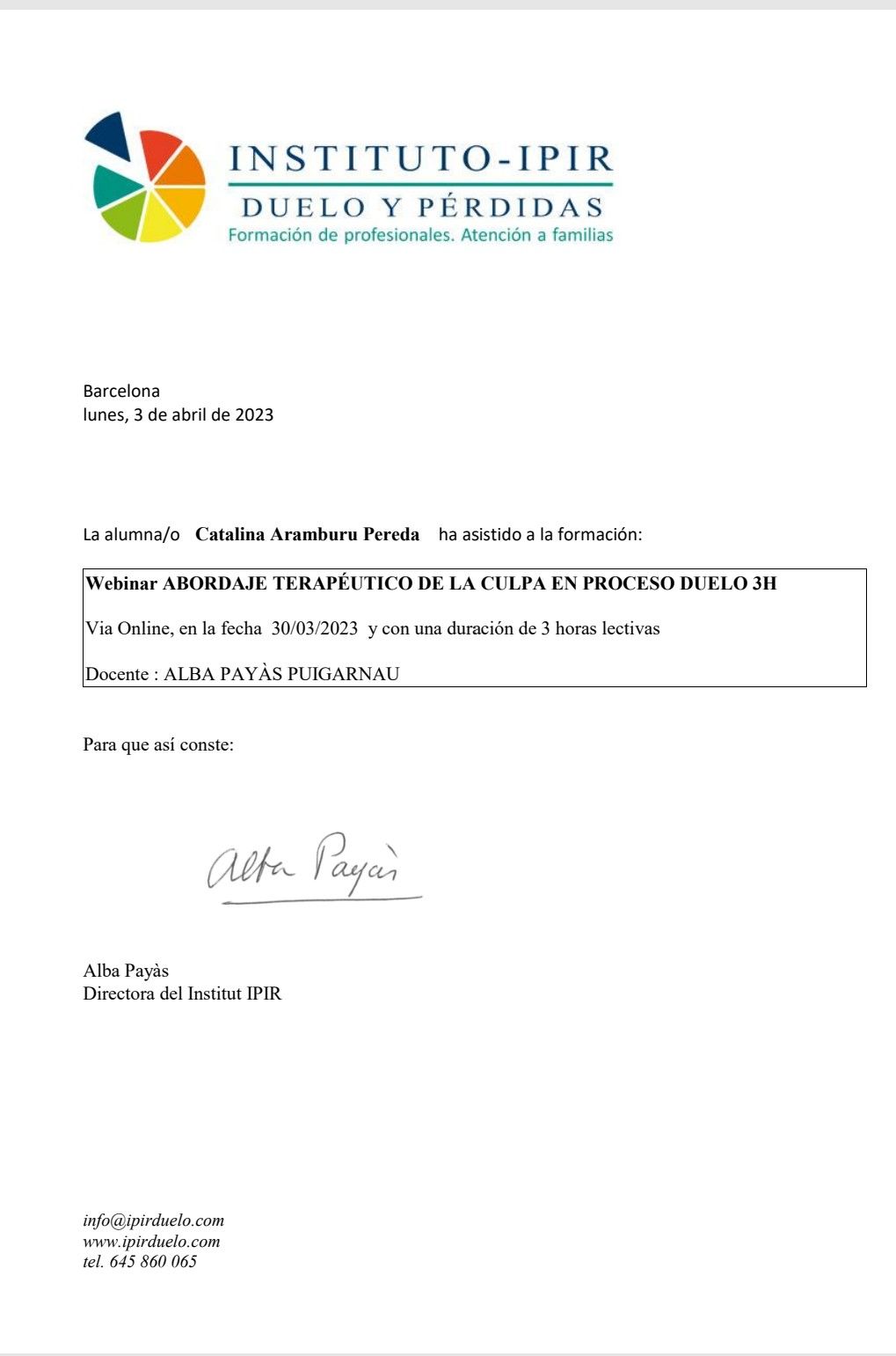 • Catalina Aramburu Psicología y Psicoterapia • Terapia individual •