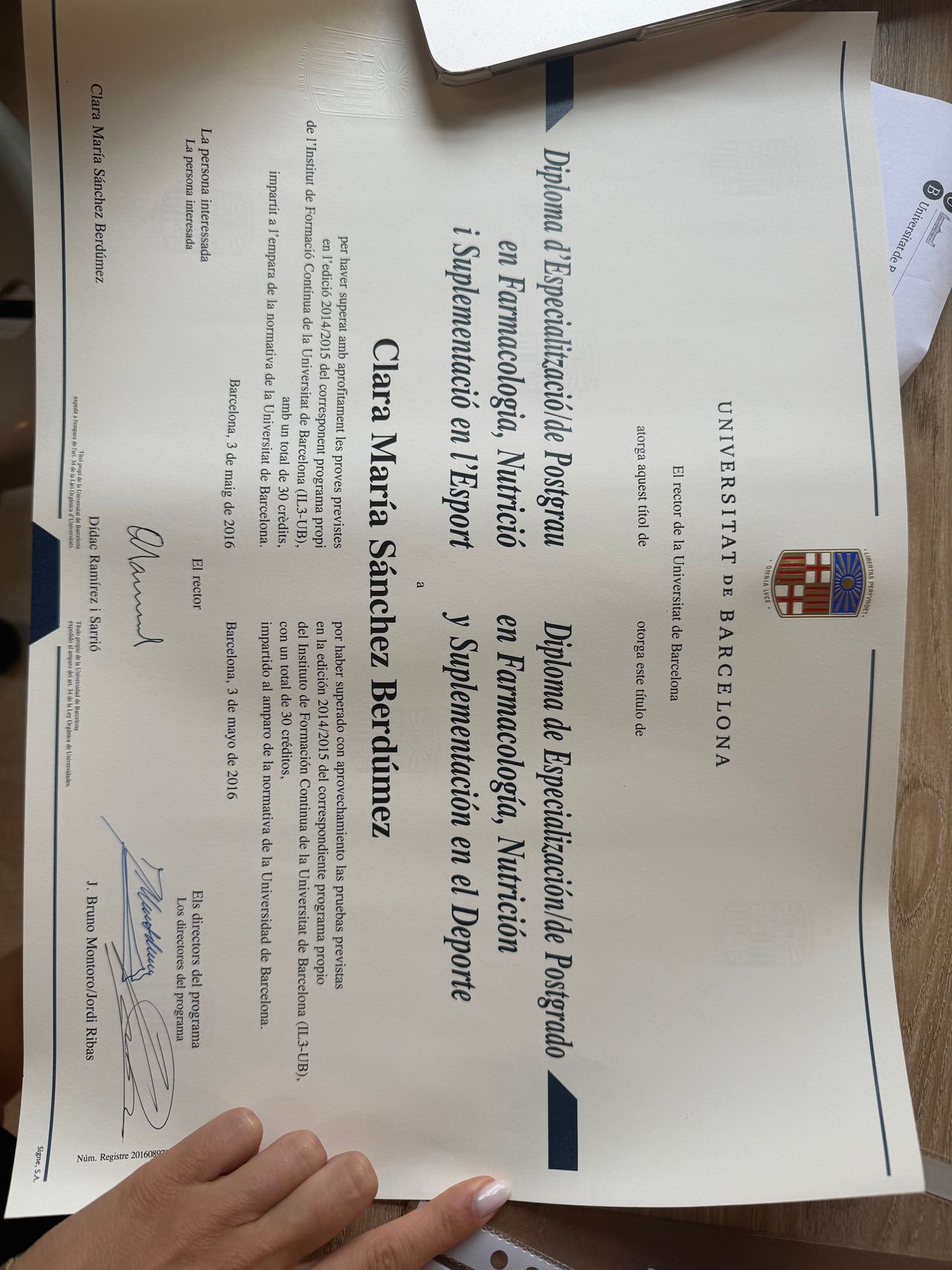 Posgrado en Nutrición Deportiva, Suplementación y Farmacología – Universidad de Barcelona