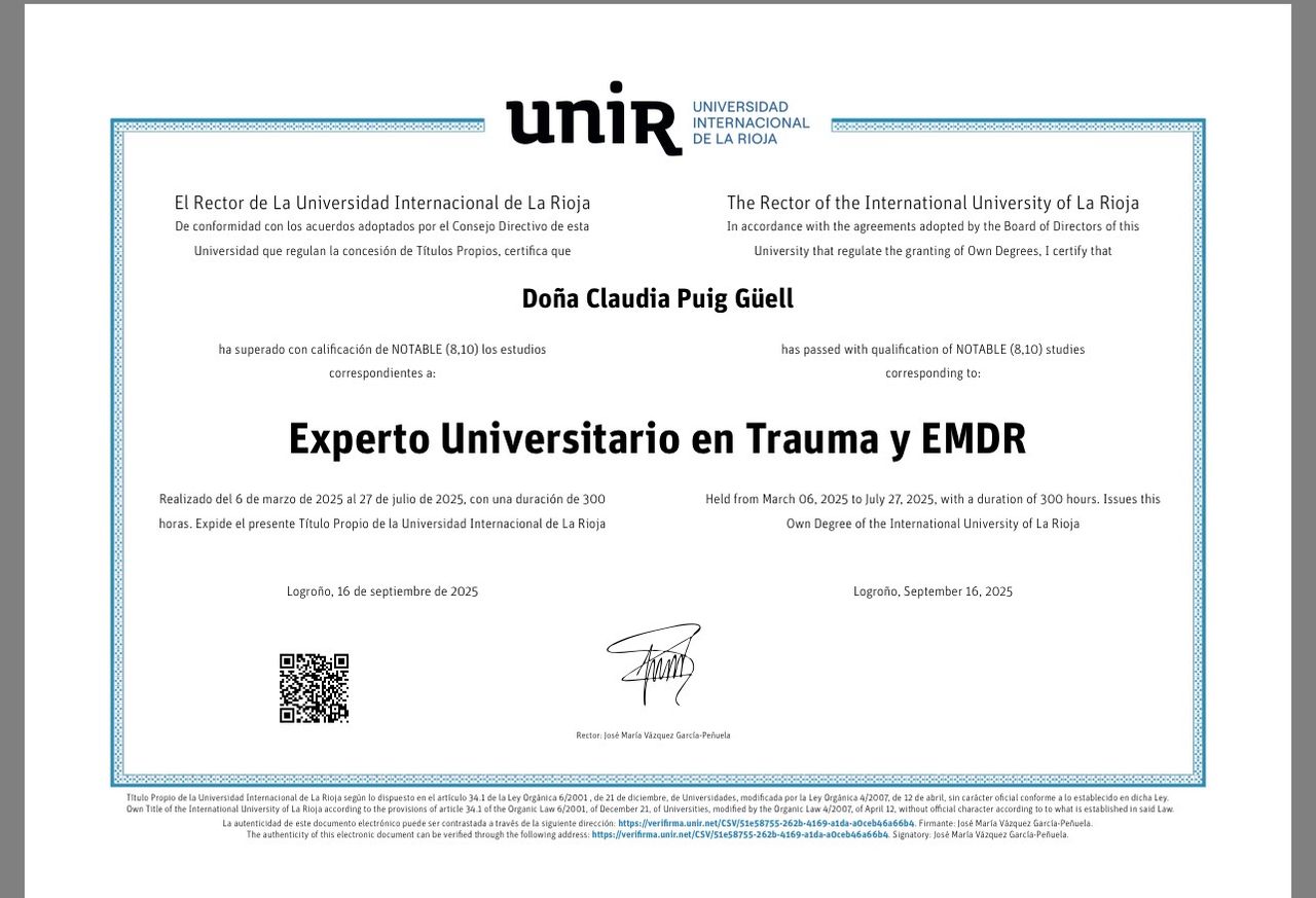 Otras formaciones en Trauma, apego, TOC, drogodependencias.
