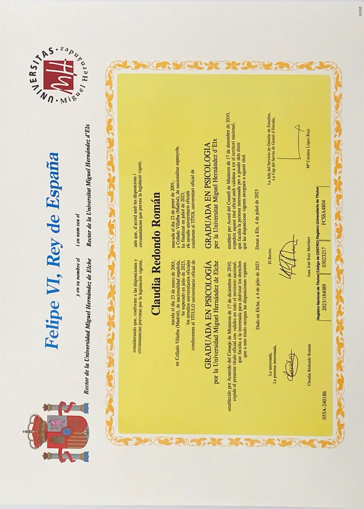 Núm. Colegiado: CV19756