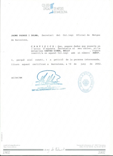 ¿Cuál es la dirección de Cirugía Plástica y Medicina Estética Dra. Nelly Cartró?La dirección de Cirugía Plástica y Medicina Estética Dra. Nelly Cartró es Plaça Antoni Pujades i Nirell, 7 Alella.