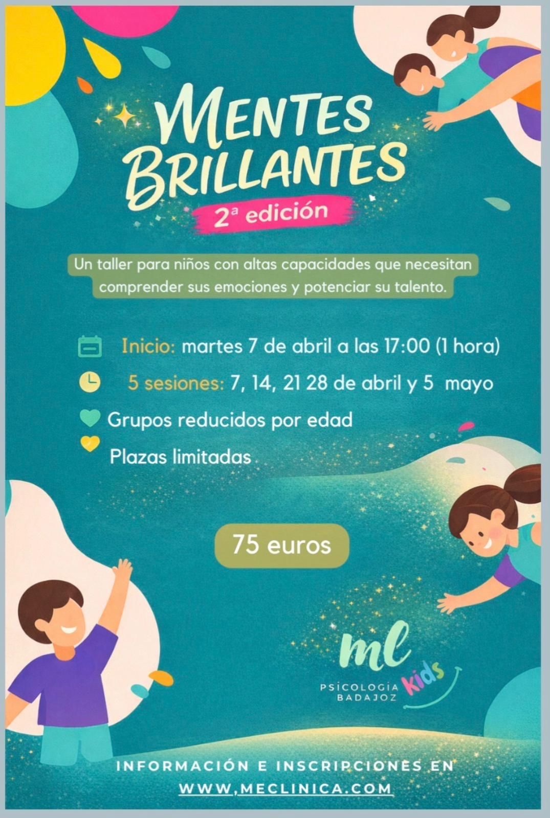 Otro año mas, os presentamos el Taller de Mentes Brillantes. Este taller es para que niños y niñas de altas capacidades puedan encontrar un lugar seguro para trabajar habilidades sociales y su creatividad.