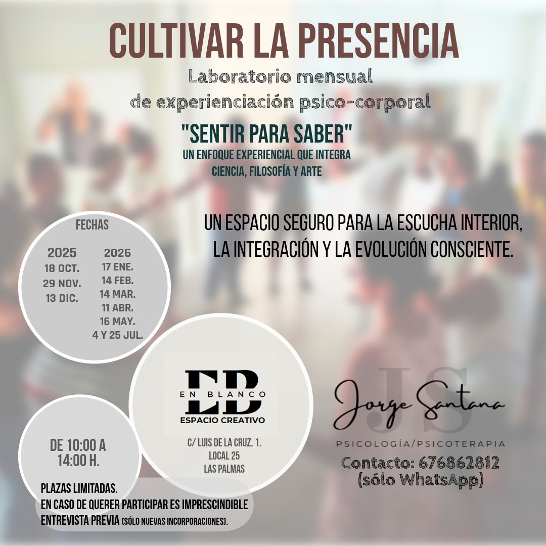 Cultivar la Presencia en grupo no sólo amplifica la vivencia y la experiencia interna sino que genera una dinámica transformacional profundamente creativa.