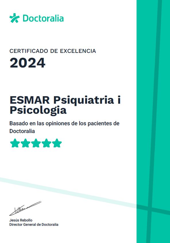 ¿Puedo hacer la visita en ESMAR Psiquiatria i Psicologia de forma online, sin tener que desplazarme?Sí, ESMAR Psiquiatria i Psicologia ofrece consulta de forma remota. Solo tienes que seleccionar "consulta online" cuando vayas a reservar cita desde el calendario, y así podrás ver las fechas y horas disponibles.