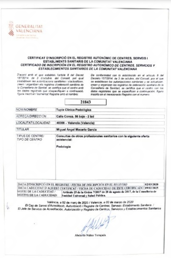 ¿Qué especialidades trata TuPie Clínica Podológica en Valencia?TuPie Clínica Podológica cuenta con un amplio equipo en Valencia que cubre las siguientes especialidades: Podología.