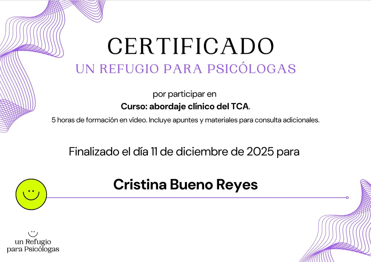 Me he formado en diversas orientaciones como terapia cognitivo-conductual, terapia Gestalt, terapia integradora, enfoques humanistas y terapias de tercera generación. Además, soy técnica superior en dietética, lo que me permite ofrecer orientación alimentaria complementaria a la terapia en casos en los que haya dificultades en la relación con la comida.