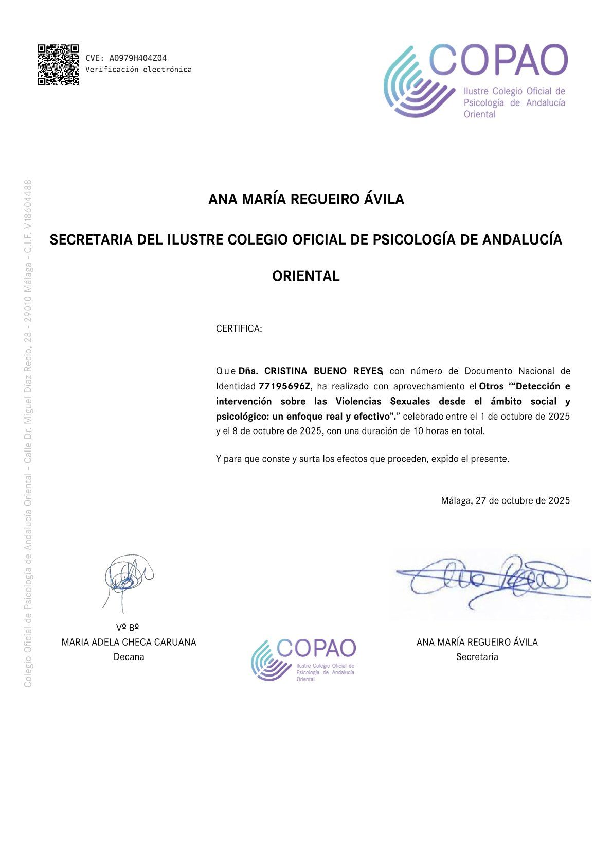 Cristina Bueno Reyes ha recibido una subvención de la Consejería de Empleo, Empresa y Trabajo Autónomo de la Junta de Andalucía, financiada por la Unión Europea con cargo al Programa FSE+ Andalucía 2021-2027, para el fomento del trabajo autónomo en Andalucía. Línea 2 de subvención para inicio de actividad económica o profesional, destinada a mujeres trabajadoras autónomas menores de 35 años