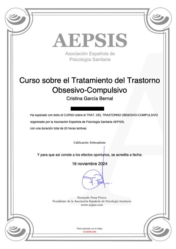 º Psicoanálisis por la Asociación Psicoanalítica y de Psicopatología de Sevilla. Dr. José Manuel García Arroyo. (2021- 2023).