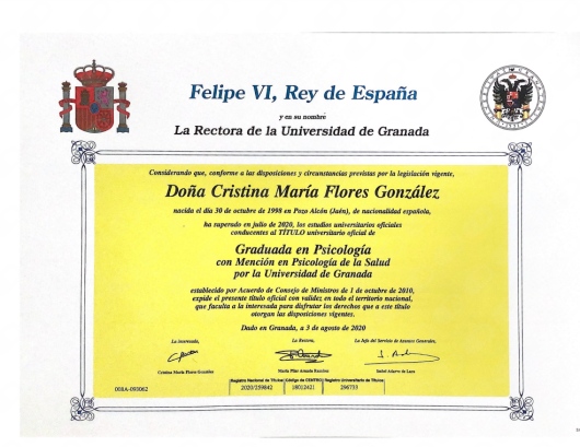 Quería comentarte antes de presentarme que vuestra opinión importa en terapia y que las reseñas más recientes podéis encontrarlas buscando en google: Cristina Flores Psicólogo Granada. Ahora sí, un poquito sobre mí: