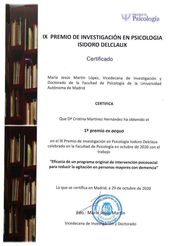 Experta en Terapia de ParejaPremio investigación reducir agitación en demenciaDestaco por un vínculo terapéutico de confianza