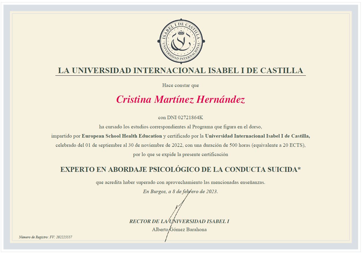 Soy Cristina Martínez , psicóloga sanitaria especializada en el ámbito clínico. Desde pequeña me fascinó entender cómo funciona la mente. Y a través de mis equipos de investigación y mi experiencia en consulta hoy ayudo a otras personas a entender la suya, con ciencia, empatía y propósito.