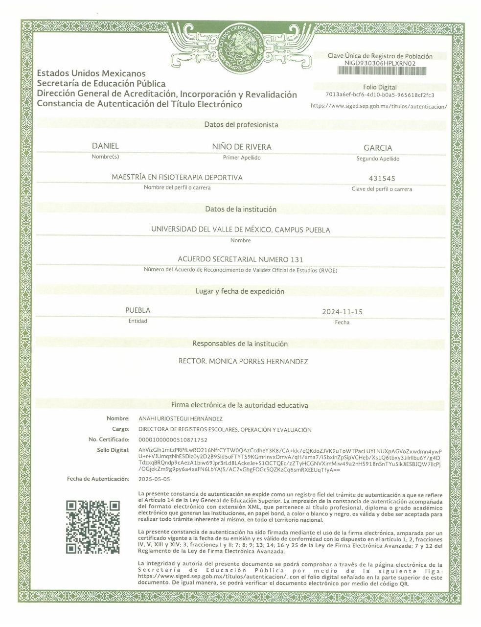 Núm. Colegiado: 282892063