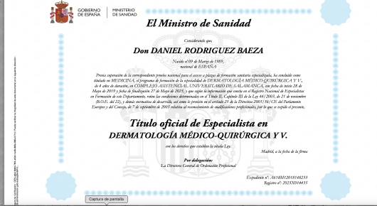 Me forme en el servicio de Dermatología del Hospital clínico de Salamanca, servicio de gran prestigio y una de las cunas de la cirugía dermatológica en España. Tuve la oportunidad de enriquecer mi aprendizaje en destacados hospitales como el 12 de Octubre y La Paz.