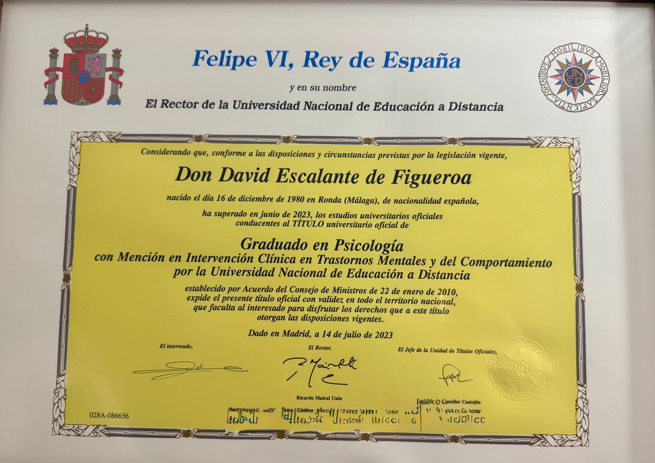 ¿Cuáles son las principales especialidades de David Escalante de Figueroa?David Escalante de Figueroa es psicólogo, fisioterapeuta. Te mostramos algunos de los servicios que ofrece gracias a su trayectoria y amplia experiencia: Tratamiento para la depresión (teleconsulta online), Consulta psicológica online, Tratamiento en adicciones (sesiones online), Tratamiento para sexo compulsivo, Atención psicológica por videoconferencia, Terapia online, Tratamiento depresión (sesiones online), Seguimiento online, Primera visita (sesiones online), Psicoterapia online.