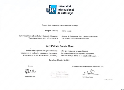 ¿Cuáles son las principales especialidades de Dery Patricia Puente Meza?Dery Patricia Puente Meza es fisioterapeuta. Te mostramos algunos de los servicios que ofrece gracias a su trayectoria y amplia experiencia: Primera visita fisioterapia, Visitas sucesivas fisioterapia, Diagnóstico de alteraciones del Movimiento, Drenaje linfático, Ejercicio terapéutico, Electrólisis Percutánea Intratisular (EPI), Electroterapia, Evaluación postural, Exploración y diagnóstico de ATM, Kinesioterapia.