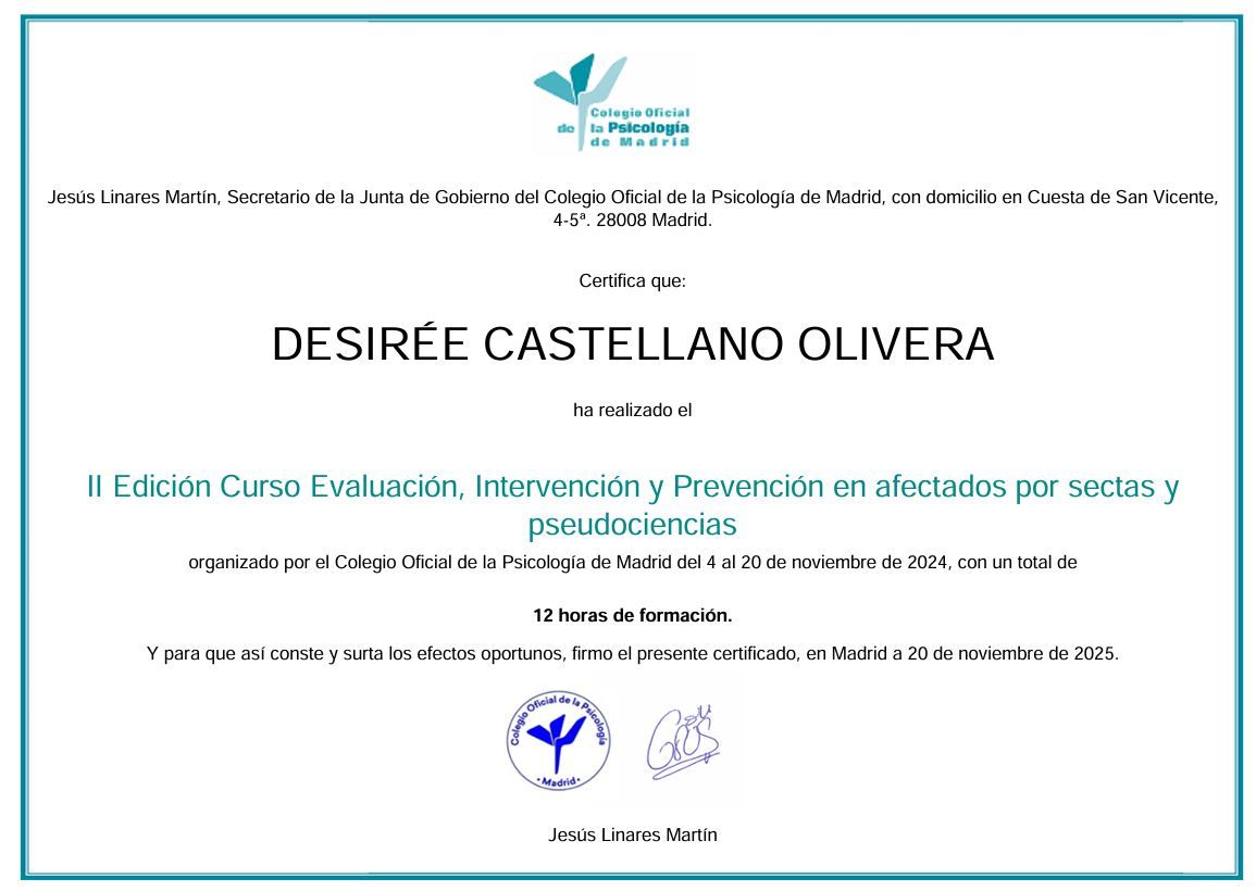 Máster en Neuropsicología Clínica.