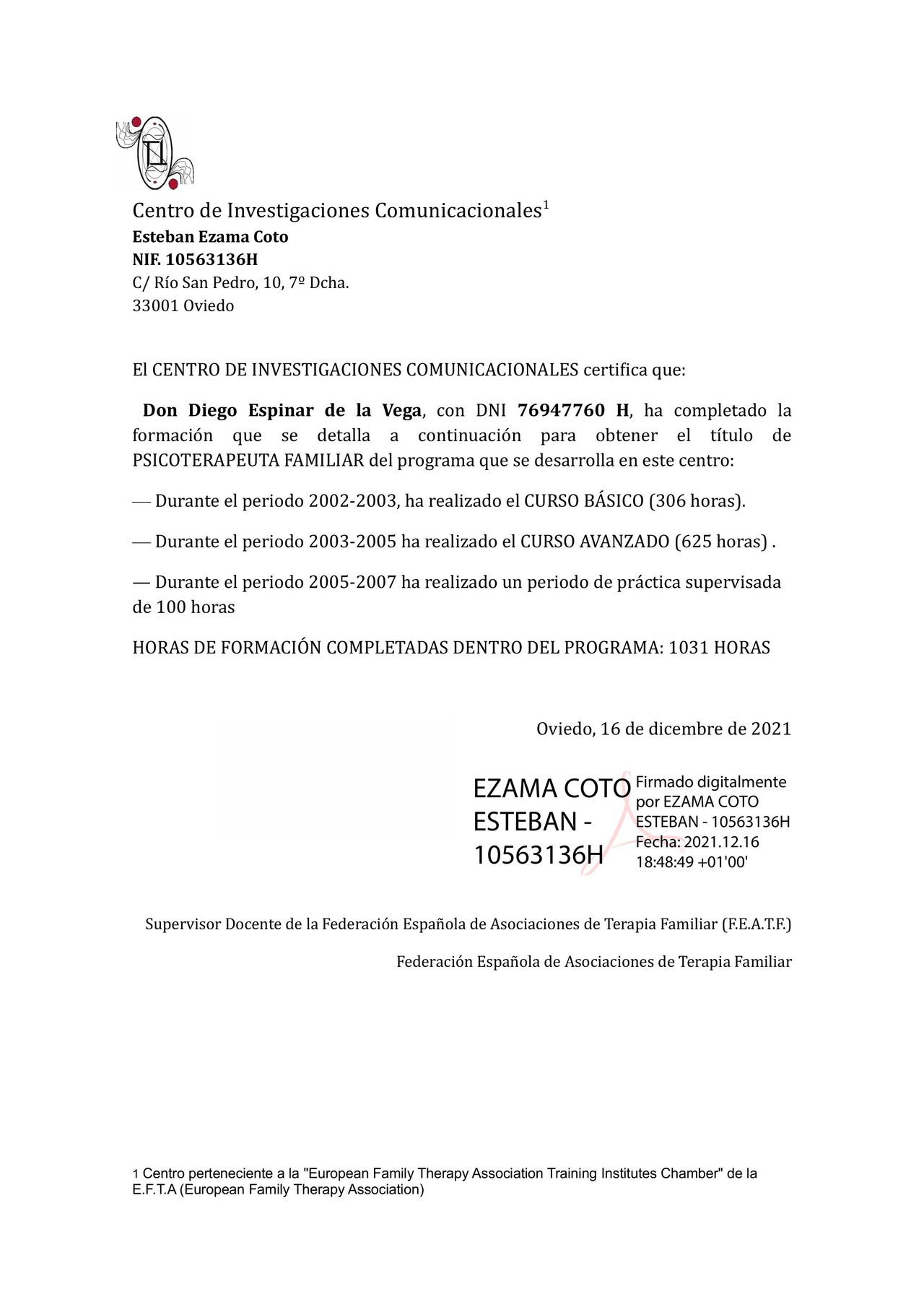 ¿Cuáles son las principales especialidades de Diego Espinar de la Vega?Diego Espinar de la Vega es terapeuta complementario. Te mostramos algunos de los servicios que ofrece gracias a su trayectoria y amplia experiencia: Consulta online, Videoconsulta online, Terapia online, Terapia familiar, Psicoterapia familiar sistémica, Psicoterapia, Psicoterapia de pareja sistémica, Psicoterapia en jóvenes, Psicoterapia infantil, Consulta psicoterapéutica de adolescentes.