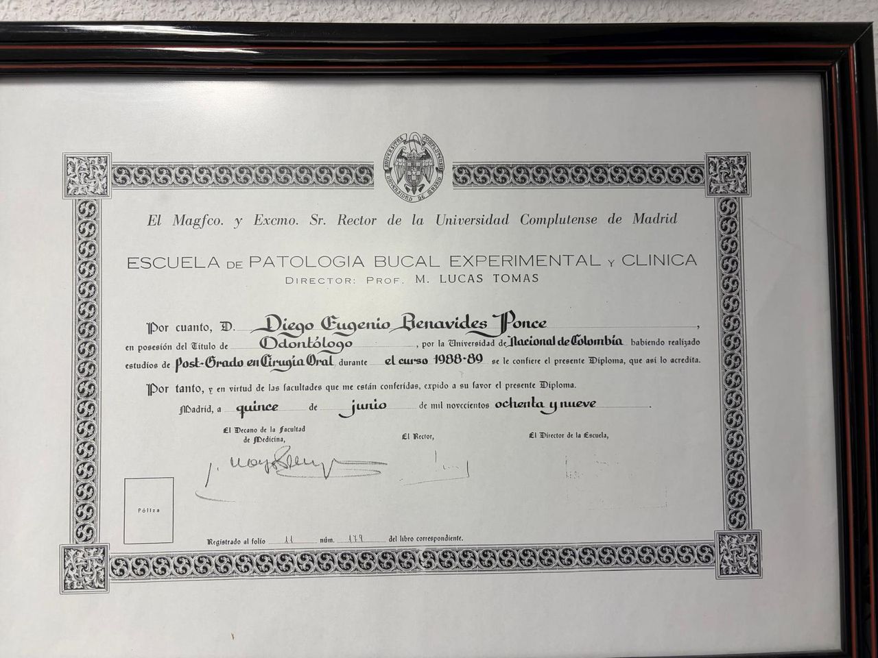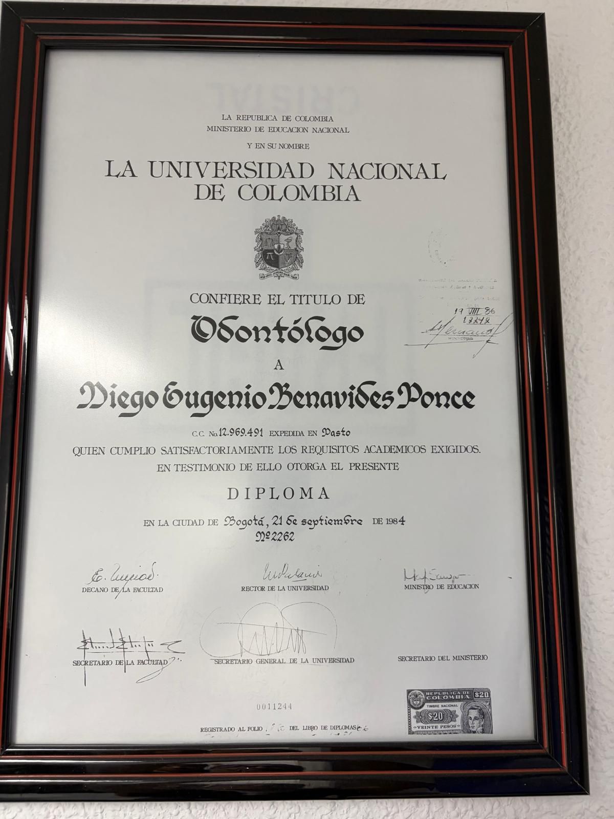 Odontólogo con más de 30 años de experiencia, formado en Colombia y actualmente ejerciendo en Madrid. A lo largo de mi trayectoria profesional he atendido a miles de pacientes, ofreciendo un enfoque integral basado en la precisión, la ética y el trato humano.