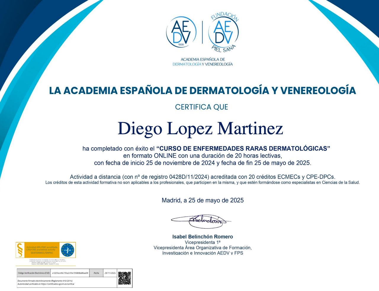 Soy especialista en Dermatología formado en la Universidad de Murcia, donde cursé el Grado en Medicina. Posteriormente realicé la especialidad de Dermatología a través del programa MIR en el Hospital Clínico Universitario Virgen de la Arrixaca (Murcia).
