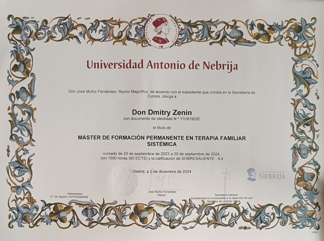 ¿Cuáles son las principales especialidades de Dmitry Zenin?Dmitry Zenin es psicólogo. Te mostramos algunos de los servicios que ofrece gracias a su trayectoria y amplia experiencia: Primera visita Psicología, Visitas sucesivas Psicología, Consulta online, Diagnóstico y tratamiento para la depresión, Técnicas cognitivas-conductuales en adicciones, Tratamiento para la adicción a las compras, Tratamiento de adicción al juego, Tratamiento para la adicción a la pornografía, Tratamiento para adicciones comportamentales, Terapia de pareja.