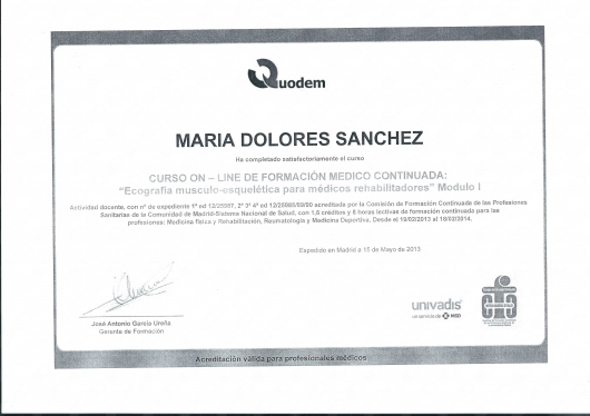 Formadora en Jornadas y Máster en ecografía musculoesquelética e intervencionismo ecoguiado.