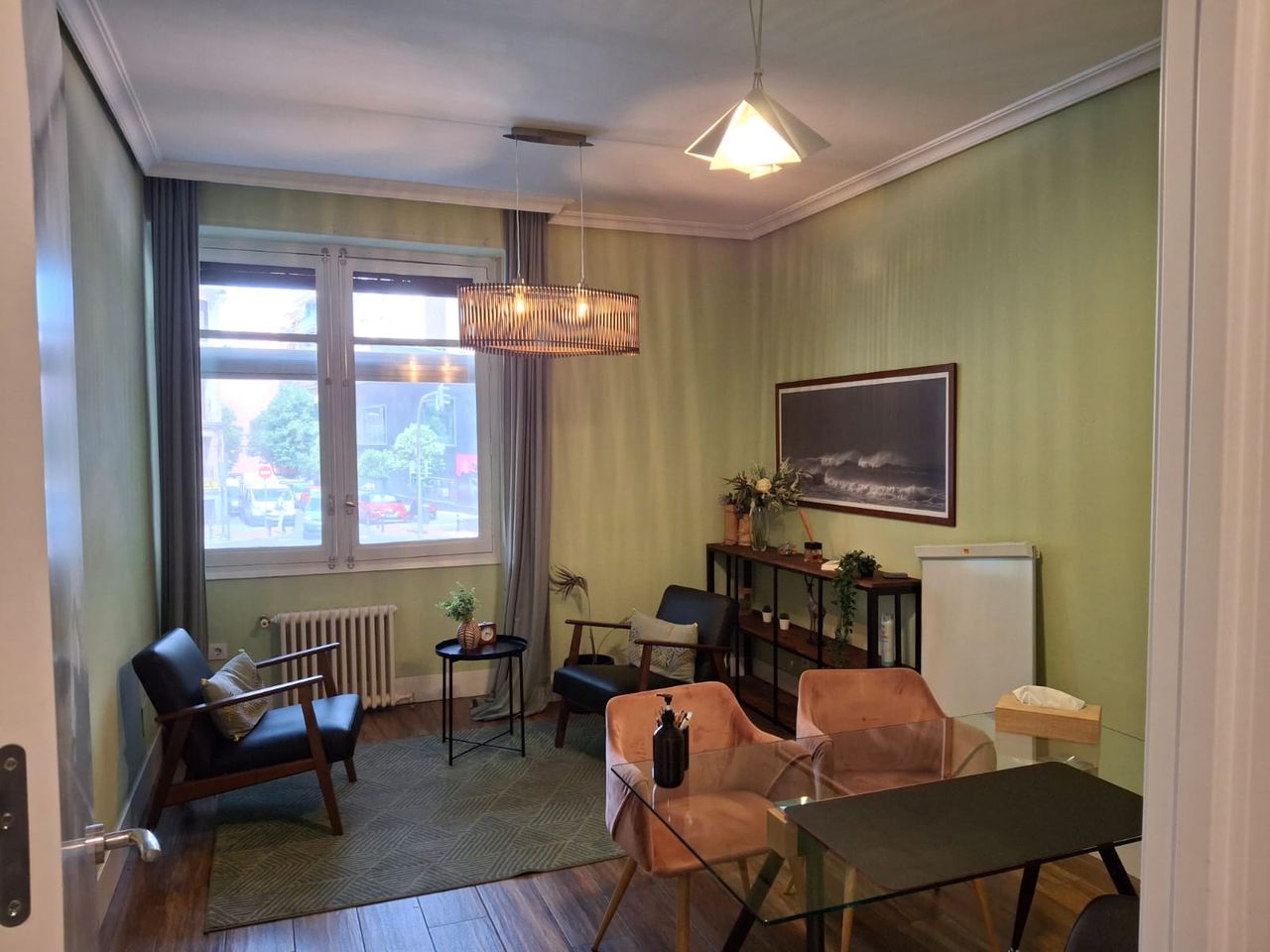 Amplia sala de espera, aseo adaptado, consulta espaciosa y climatizada.