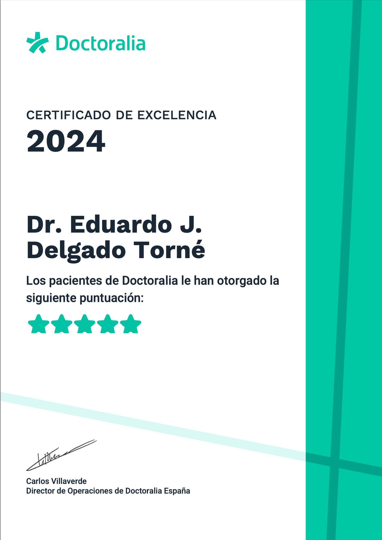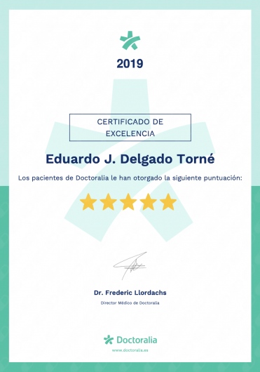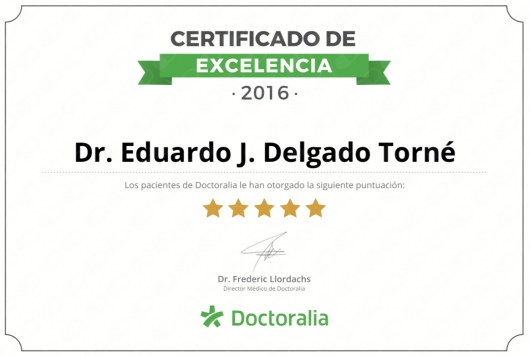¿Qué opinan los pacientes de Eduardo J. Delgado Torné?Un total de 515 pacientes han querido dejar una opinión sincera y real sobre Eduardo J. Delgado Torné, otorgándole además una valoración media de 5 estrellas (sobre un máximo de 5).