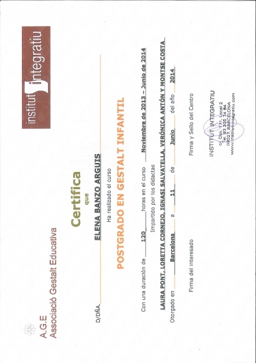 Psicóloga general sanitaria Col. A-2256. Directora de RIZOMA Salud Integral. Formada en psicoanálisis, psicodrama y técnicas de video intervención. Formada en terapia sistémico familiar y en terapia Gestalt aplicada a la infancia y a la adolescencia. Formada en técnica de cocreación, clown terapéutico, reiki, ayuryoga, método afroyin, freetoheal, danza chakras y facilitadora de constelaciones familiares. Docente de GIA en el Institut Integratiu en Barcelona, Huesca, Tarragona, Vitoria, Rubí y Mallorca.