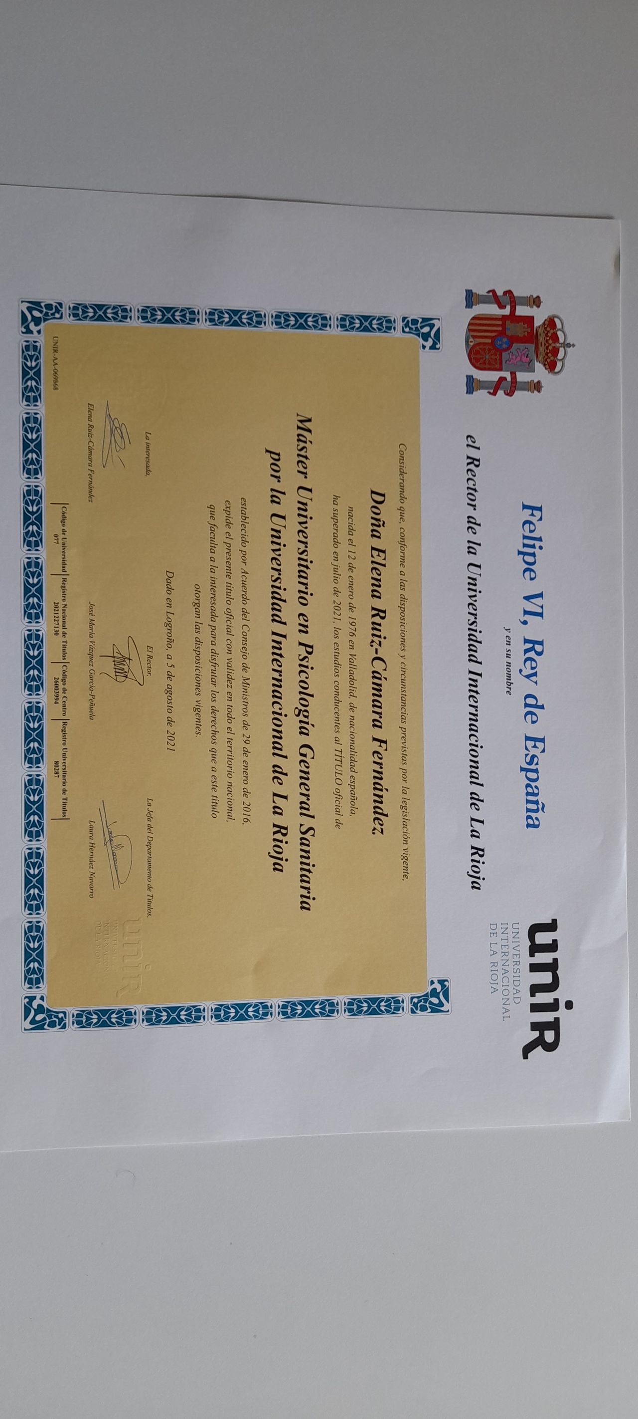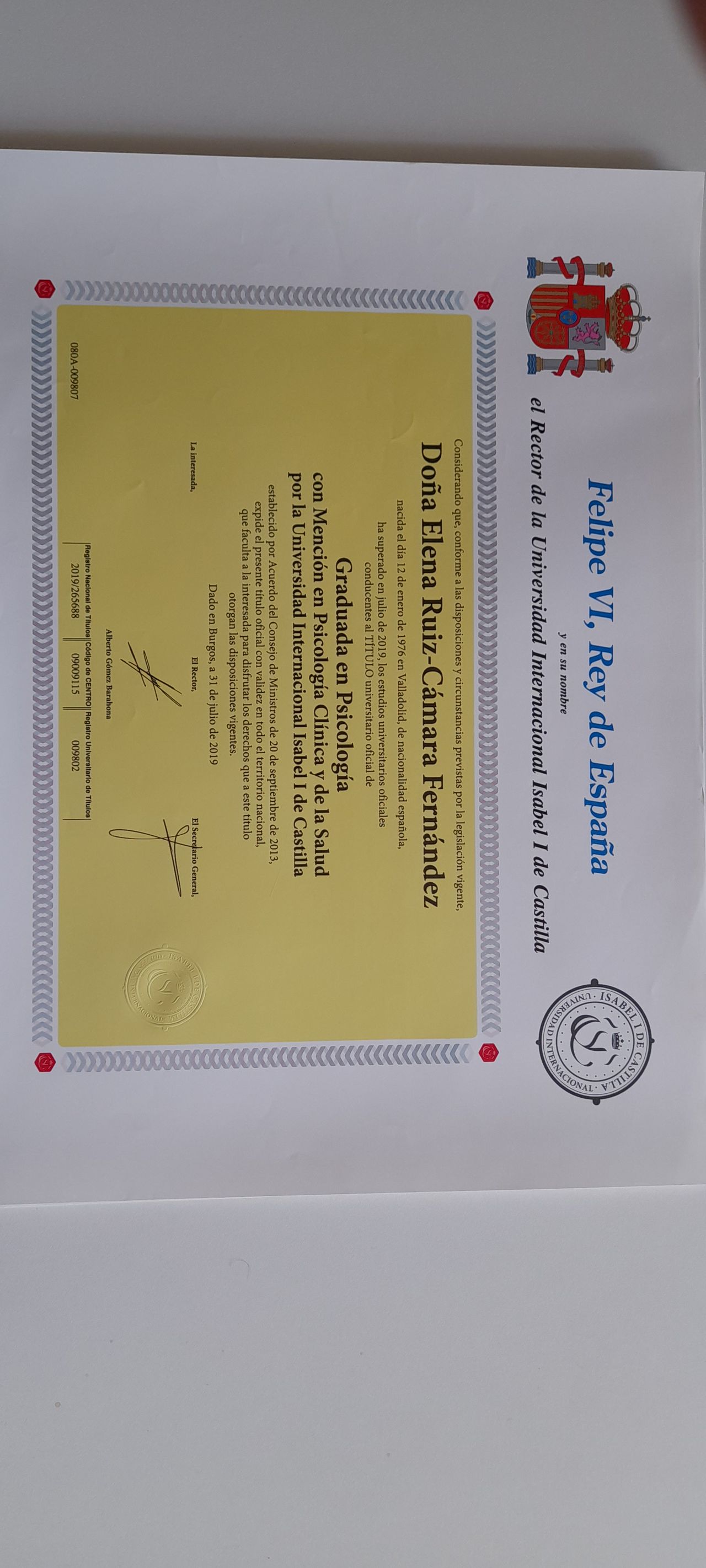 ¿Cuáles son las principales especialidades de Elena Ruiz-Cámara Fernández?Elena Ruiz-Cámara Fernández es psicóloga. Te mostramos algunos de los servicios que ofrece gracias a su trayectoria y amplia experiencia: Psicoterapia individual, Consulta de Psicología Sanitaria, Primera visita Psicología, Terapia de pareja, Psicoterapia en adolescentes, Terapia familiar, Psicoterapia, Terapia de duelo, Tratamiento de fobias, Técnicas cognitivas-conductuales en adicciones.