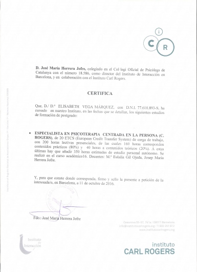 ¿Cuáles son las principales especialidades de Elisabeth Vega Márquez?Elisabeth Vega Márquez es psicóloga. Te mostramos algunos de los servicios que ofrece gracias a su trayectoria y amplia experiencia: Psicoterapia adultos, Primera visita Psicología, Visitas sucesivas Psicología, Psicoterapia EMDR, Mindfulness, Terapia para ansiedad.