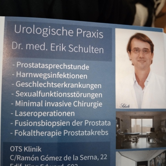 Following a high PSA reading, I consulted Dr Schulten. He was friendly and professional, arranged for an MRI scan and then a biopsy all of which were conducted diligently and efficiently with no pain and no major side-effects. This gave me total confidence in his treatment and in his advice. I am now reassured regarding the future. I would highly recommend Dr Schulten to all men who are having concerns regarding potential prostate cancer.