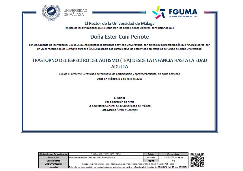 Especialista en autismo, TDAH y altas capacidadesCertificada evaluación TEA y doctoranda en autismoEmpatía · Validación · Neuroinclusión · Respeto