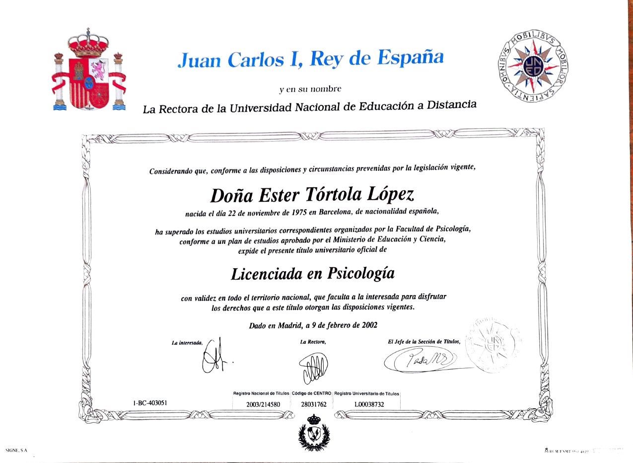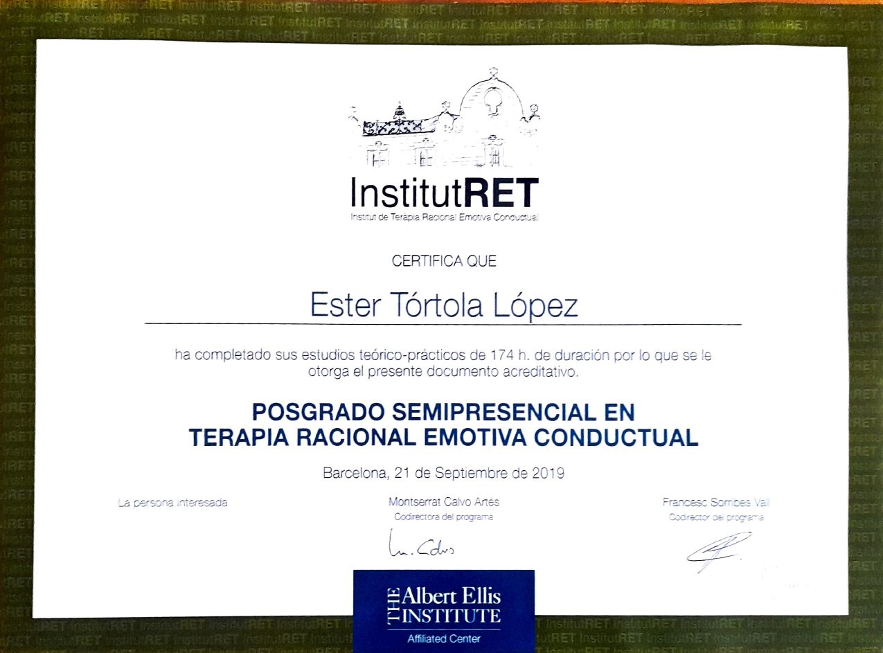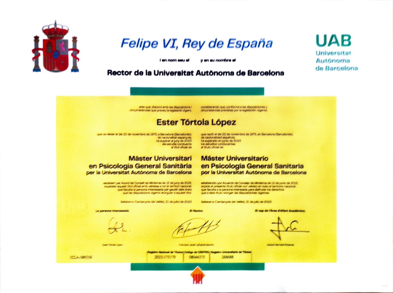 Soy Ester Tórtola, psicóloga de profesión, pero sobre todo de vocación. Elegí este camino porque creo firmemente que la salud mental es el pilar sobre el que se construye todo lo demás. Cuando se resquebraja, trabajar, mantener relaciones sanas, educar a los hijos o sacar adelante un proyecto vital se vuelve mucho más difícil. Acompañar a las personas a recuperar ese equilibrio es, para mí, un verdadero sentido de vida.