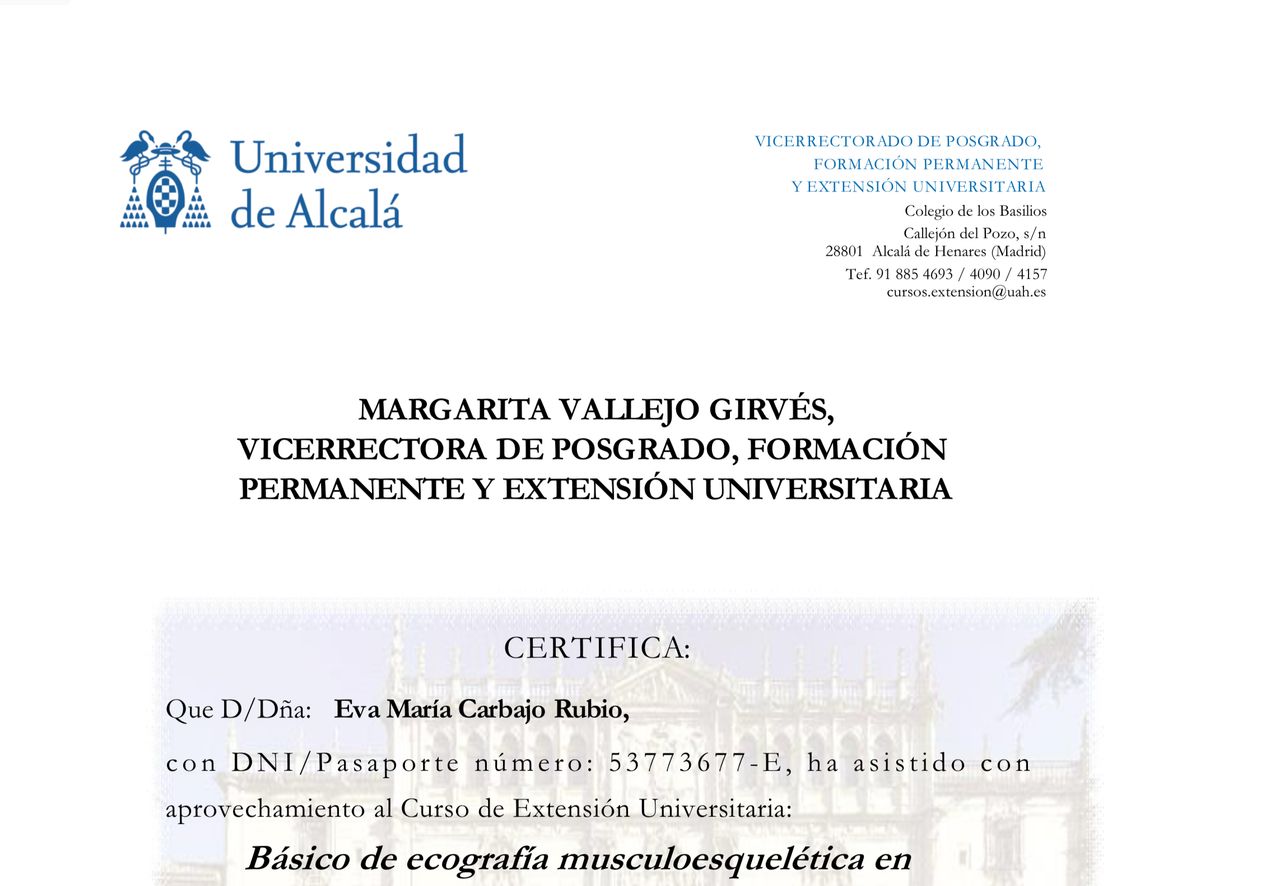 ¿Cuáles son las principales especialidades de Eva Carbajo Rubio?Eva Carbajo Rubio es médica general, especialista en medicina del deporte. Te mostramos algunos de los servicios que ofrece gracias a su trayectoria y amplia experiencia: Seguimiento online, Infiltraciones articulares o periarticulares, Infiltraciones de ácido hialurónico, Infiltraciones de Plasma Rico en Factores de Crecimiento (PRP), Tratamiento con factores de crecimiento, Visita de revisión, Medicina Integrativa, Medicina Deportiva, Visita Medicina del Deporte, Infiltraciones con suero, anestésicos o corticoides.