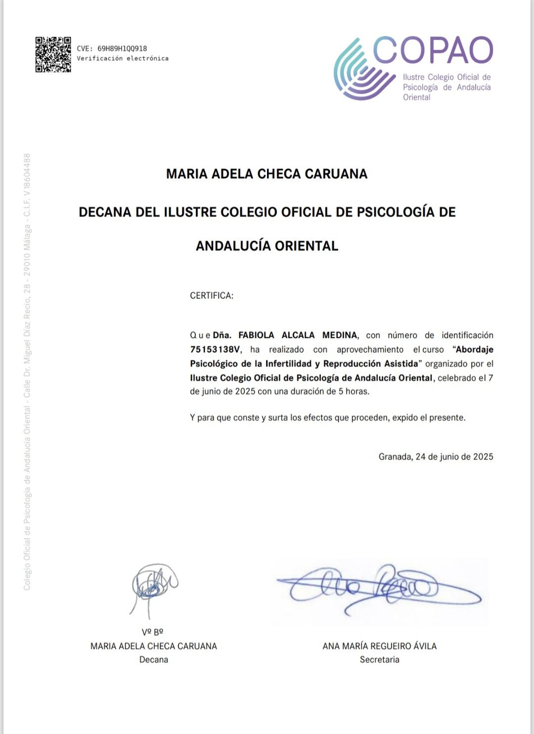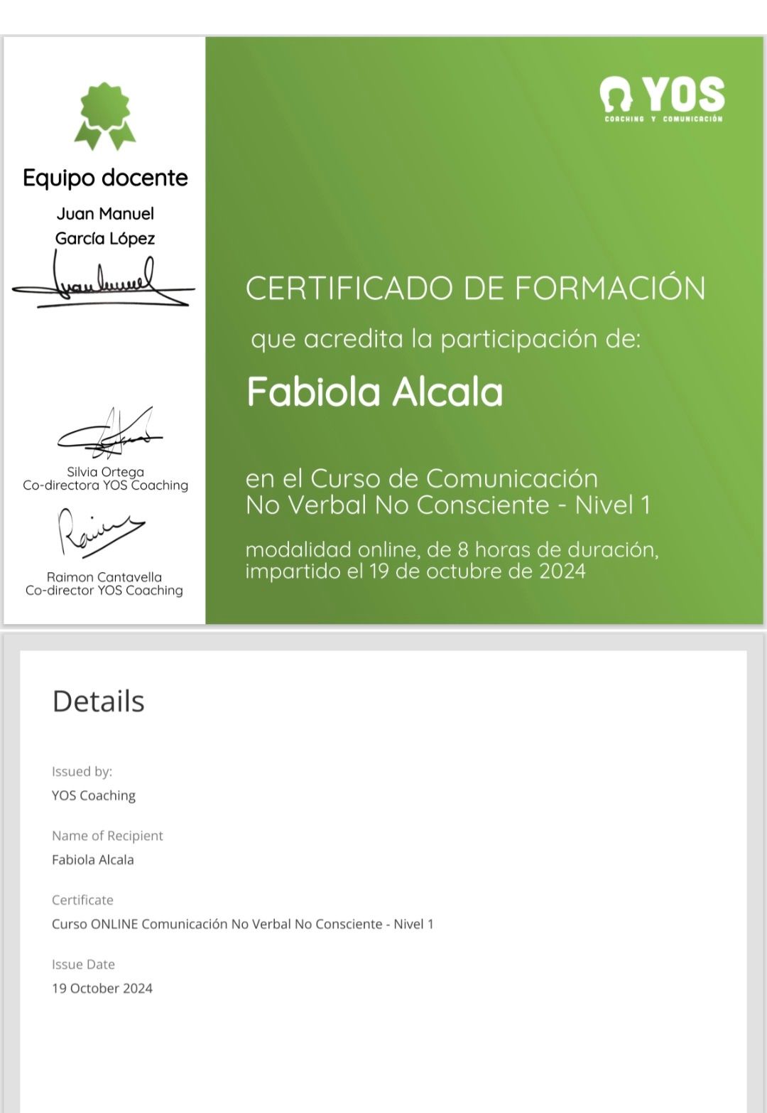 Tuve la suerte de conocer a Fabiola gracias a un familiar, y desde el primer momento su ayuda y paciencia han sido fundamentales para mí. Es una gran profesional que transmite mucha paz y crea un espacio seguro donde puedes expresarte con total confianza.