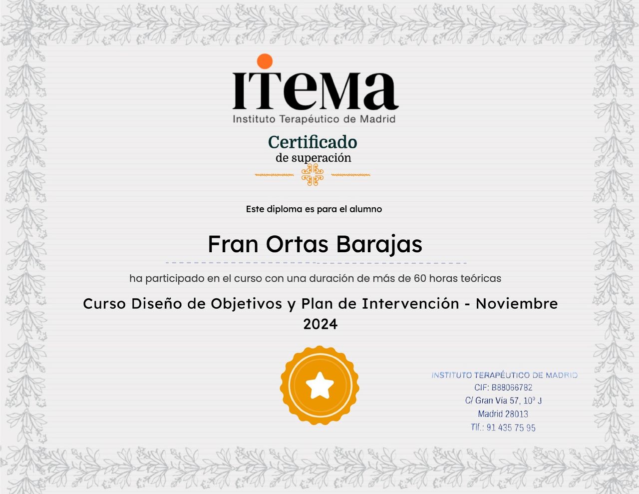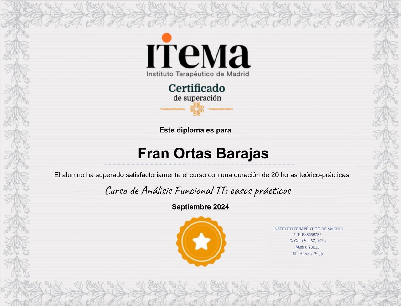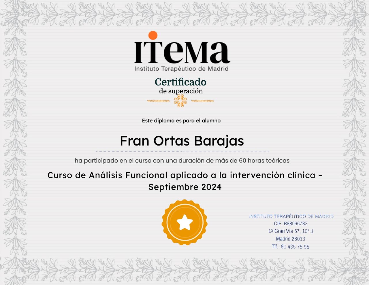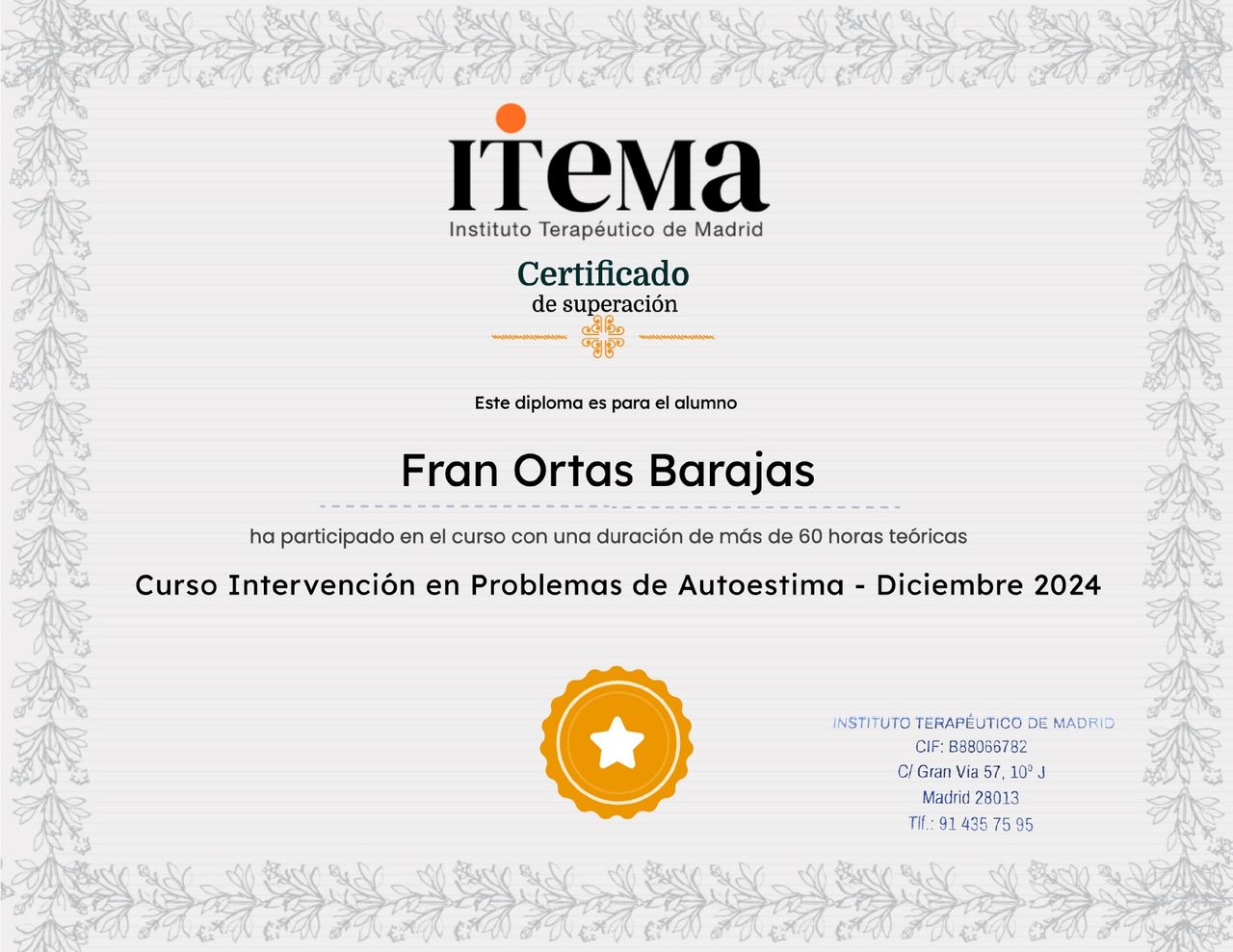 Mi experienca en terapia con Fran ha sido totalmente positiva. Creo que las técnicas y herramientas que me ha dado me han ayudado verdaderamente a superar los problemas que estaba enfrentando, y me he sentido muy acompañado por él durante las sesiones y fuera de ellas. Lo recomiendo totalmente.