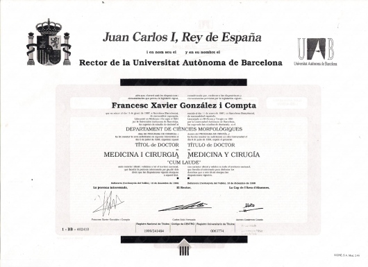 • Doctor en Cirugía por la Universidad Autónoma de Barcelona en 1998