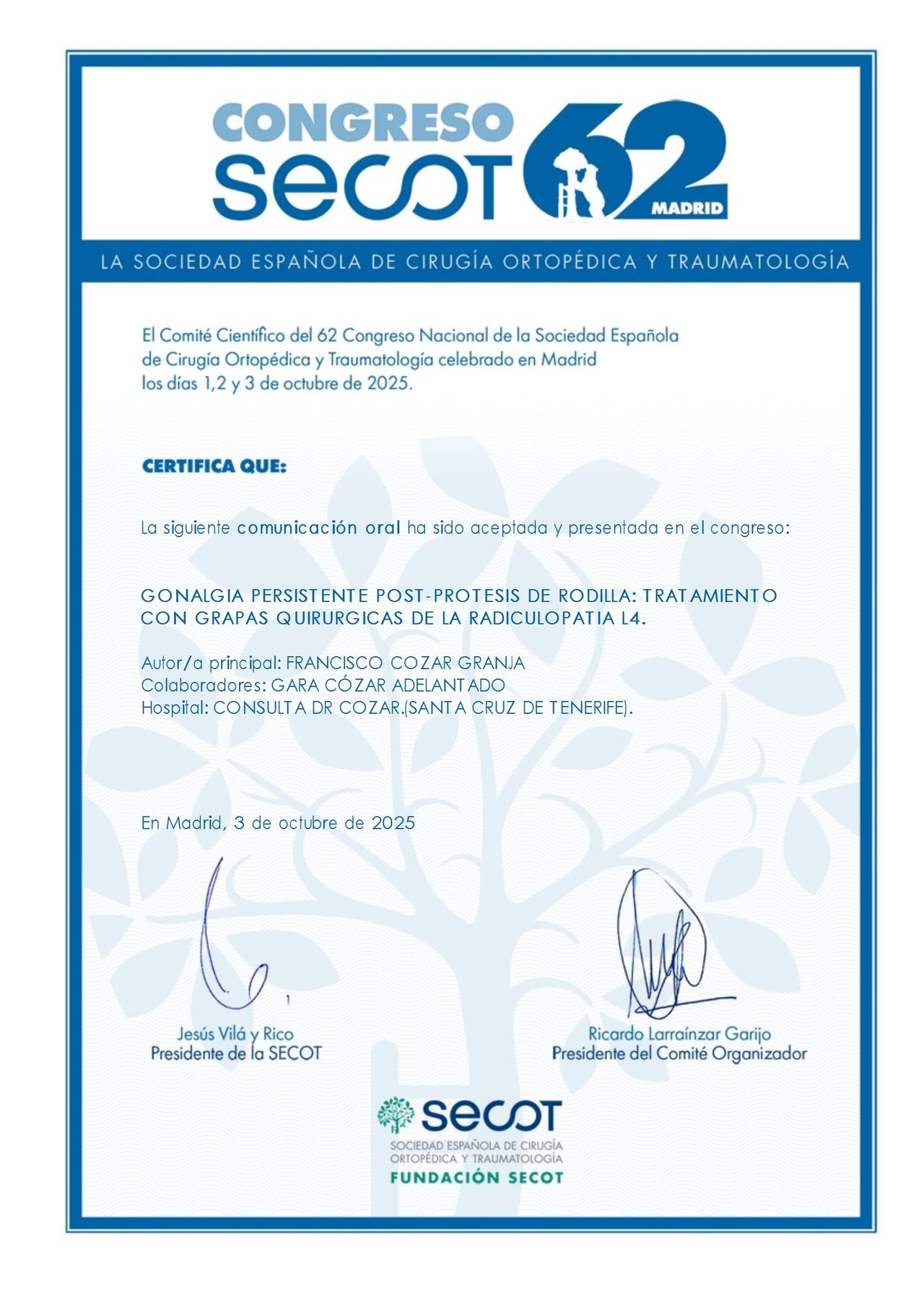 Excelente. Recomendado que vayan al Traumatólogo Doctor Francisco Cózar de la Granja