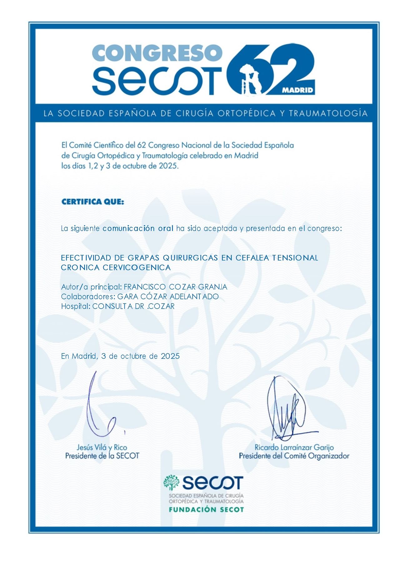 Dolor de espalda crónico: un desafío con solución. El dolor de espalda es una de las afecciones más incapacitantes y frecuentes en la población. En muchos casos, se debe a hernias discales, protrusiones, artrosis, espondilolistesis o pinzamientos nerviosos. Estas patologías pueden provocar cervicalgias, lumbalgias y ciáticas que afectan la movilidad y calidad de vida. Para algunos pacientes, la cirugía no es una opción viable, ya sea porque el diagnóstico no lo justifica o porque los resultados de procedimientos previos no han sido satisfactorios. Sin embargo, la ciencia del dolor ha avanzado significativamente, y hoy es posible tratar estos cuadros de manera efectiva sin necesidad de intervenciones agresivas. Un tratamiento innovador basado en la neurofisiología del dolor. A lo largo de más de 40 años de experiencia médica, he tratado a miles de pacientes con dolor neuropático crónico. Esto me llevó a desarrollar un enfoque basado en principios anatómicos y neurofisiológicos: las grapas metaméricas. Este método, utilizado desde 2004 y aplicado de forma sistemática desde 2010, ha demostrado una alta eficacia en el tratamiento de: • Cefalea tensional crónica de origen cervical, especialmente tras latigazos cervicales o cambios degenerativos de la columna. • Cervicobraquialgias con origen en radiculopatías crónicas cervicales. • Lumbalgias crónicas que afectan la movilidad y limitan las actividades diarias. • Ciatalgias que producen dolor irradiado en la pierna y afectan la marcha. • Radiculopatías crónicas. • Síndrome de cirugía lumbar fallida, cuando el dolor persiste o se agrava tras una intervención quirúrgica. • Gonalgia persistente tras cirugía protésica de rodilla. ¿Cómo funciona? Las grapas metaméricas se colocan en puntos estratégicos de la piel, siguiendo el trayecto de los nervios raquídeos, para modular la señal del dolor y restablecer el equilibrio neurológico. Este procedimiento, basado en estudios anatómicos y en el conocimiento del procesamiento del dolor en la médula espinal, permite interrumpir los circuitos de dolor crónico y proporcionar un alivio significativo. Grapas Metamericas está registrado en la Oficina Española de Patentes y Marcas desde 2016, asegurando su originalidad y respaldo científico. ¿Por qué considerar este tratamiento? - Efectividad comprobada: Miles de pacientes han experimentado una mejoría notable, incluso aquellos que no habían respondido a otros tratamientos. - No requiere cirugía: Es un procedimiento ambulatorio, mínimamente invasivo. - Resultados rápidos: En muchos casos, el alivio del dolor se percibe de inmediato o en pocos días. - Sin necesidad de medicación crónica: Evita la dependencia de analgésicos y antiinflamatorios. - Bajo riesgo y alta tolerabilidad: Prácticamente sin efectos adversos significativos. Recupera tu calidad de vida. Si padeces dolor crónico de origen vertebral y buscas una solución efectiva, este tratamiento puede marcar la diferencia. Consulta si las grapas metaméricas son adecuadas para tu caso y da el primer paso hacia una vida sin dolor. Agenda una consulta y evalúa tu mejor opción de tratamiento.