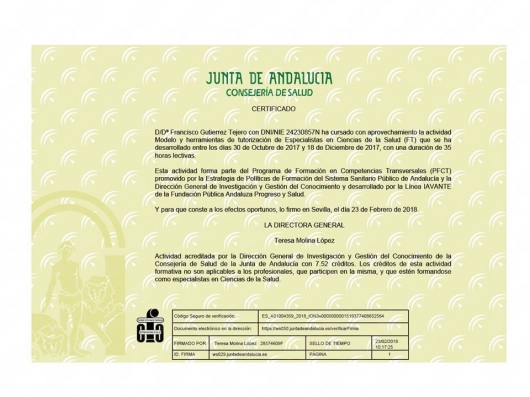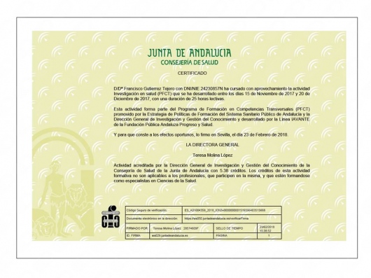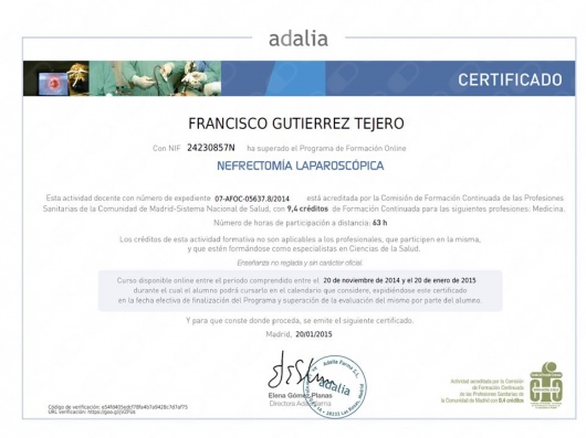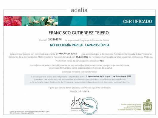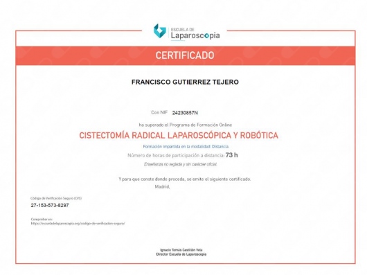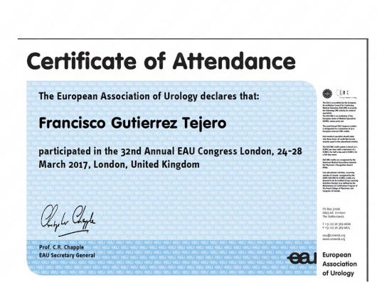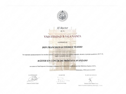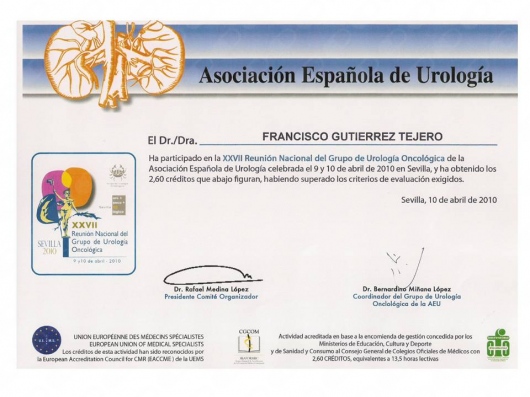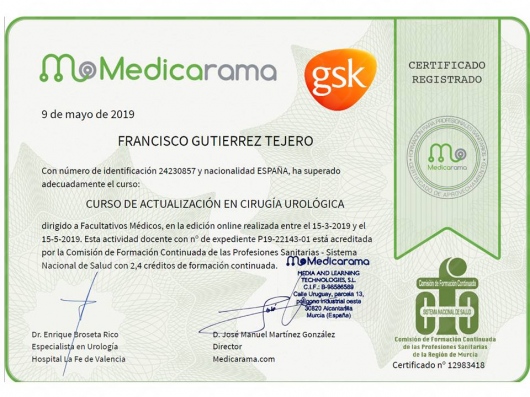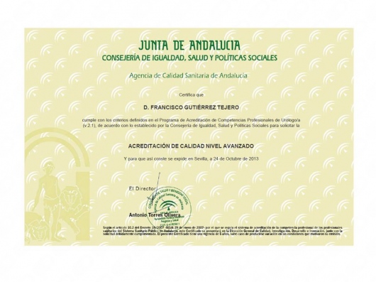Licenciado en Medicina y Cirugía 1987-1993. Médico Interno Residente en Medicina Familiar y Comunitaria 1996-1999. Médico Interno Residente en Urología 1999-2004. Facultativo especialista en Urología desde el año 2004. He desarrollado mi actividad asistencial urológica en el ámbito público en el Complejo Hospitalario de Jaén hasta junio del 2018. Desde julio de 2018 hasta la actualidad desempeño mi labor urológica pública en el Hospital Universitario San Cecilio de Granada. Doctor en Medicina desde 2007. Miembro de la Asociación Española de Urología y de la Asociación Andaluza de Urología.