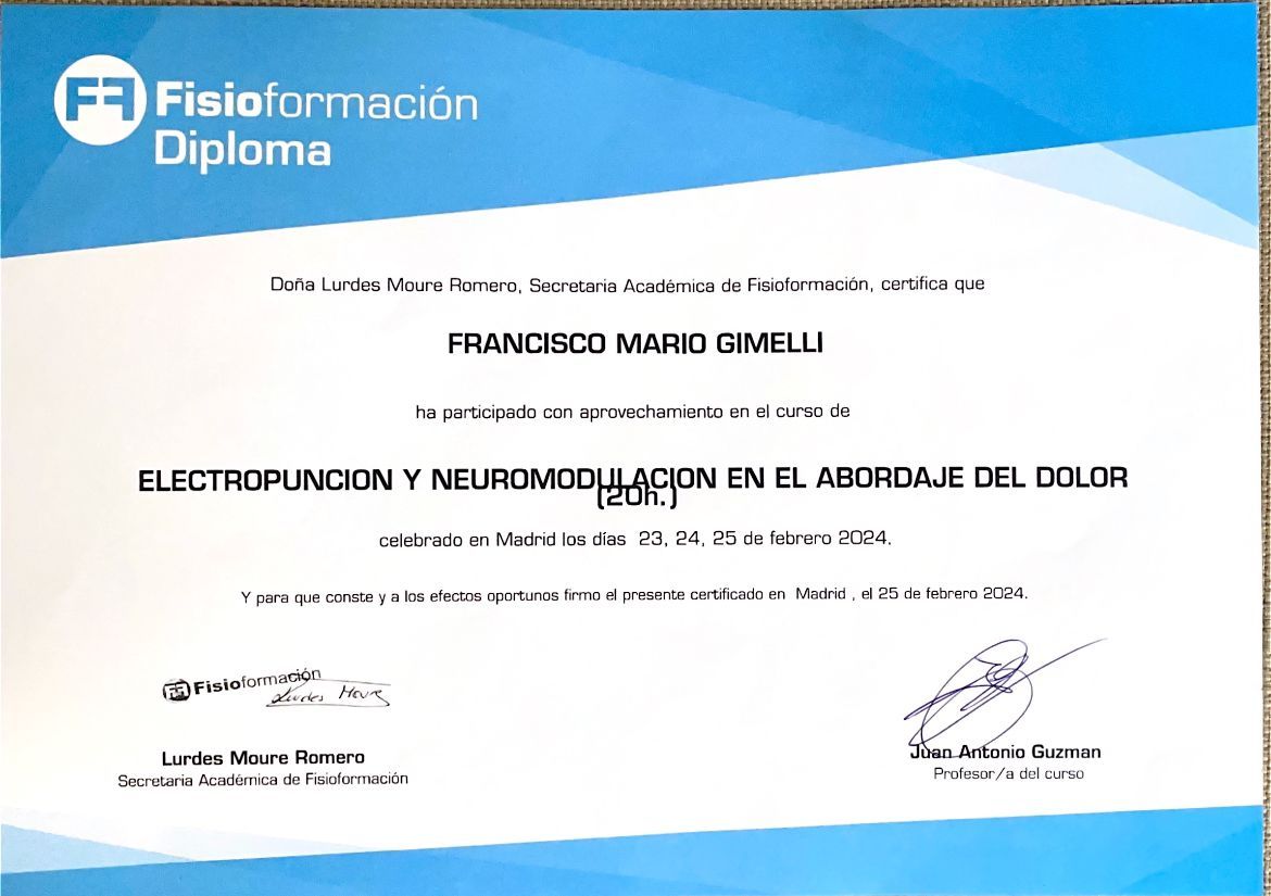¿Cuáles son las principales especialidades de Francisco Mario Gimelli Gastaldi?Francisco Mario Gimelli Gastaldi es fisioterapeuta. Te mostramos algunos de los servicios que ofrece gracias a su trayectoria y amplia experiencia: Primera visita fisioterapia, Visitas sucesivas fisioterapia, Masaje terapéutico, Tratamiento de fisioterapia con el método Indiba, Masaje deportivo, Tratamiento para tendinitis, Punción seca, Ejercicio terapéutico, Fisioterapia deportiva, Tratamiento musculoesquelético Radiofrecuencia (INDIBA).