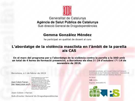 Soy docente universitaria des del 2016 impartiendo materias de practicum, fundamentos en la intervención socioeducativa, salud, sexualidad y relaciones interpersonales en jóvenes y adolescentes, salud mental y adicciones y trabajos de final de grado. Participo en expertos en adicciones y dirijo el máster en adicciones.