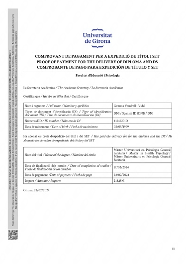 - Universidad de Girona: grado en psicología, màster general en psicología sanitaria, post-grado en inteligencia emocional.