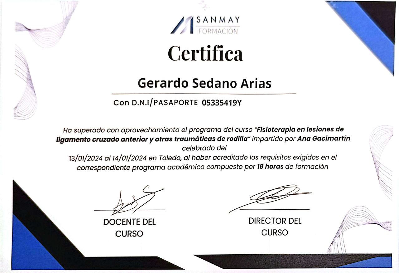 Quiero agradecer a Gerardo su enorme dedicación, profesionalidad y empatía durante todo el proceso de recuperación de mi lesión de menisco y LCA, incluidas las complicaciones tras la cirugía.